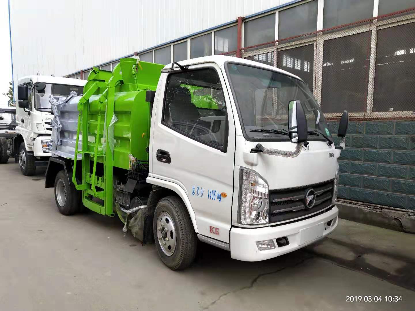 將桶裝餐廚泔水垃圾經(jīng)專用提升架緩緩上提,在車頂部倒入車廂內(nèi)(車箱可分為箱體和罐體),被投放的垃圾經(jīng)過(guò)強(qiáng)有力的推板擠壓,在罐體內(nèi)實(shí)現(xiàn)固液分離,被分離的液體進(jìn)入罐體底部的污水箱,固體垃圾被壓縮儲(chǔ)存在罐體,體積變小,如此反復(fù)待裝滿后送至餐廚垃圾資源優(yōu)化處理廠。