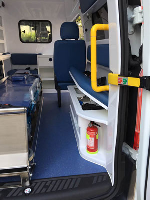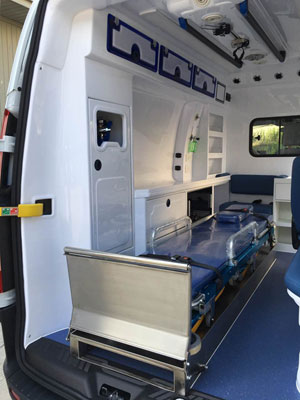 鋁地板;爆閃燈、頂柱閃、自動上車擔(dān)架、整車貼膜、車身兩側(cè)盲窗、整車油漆彩噴、可視倒車?yán)走_(dá)系統(tǒng)及導(dǎo)航儀、電動吸引器、玻璃鋼一體內(nèi)飾、可根據(jù)客戶要求加裝其他配置。