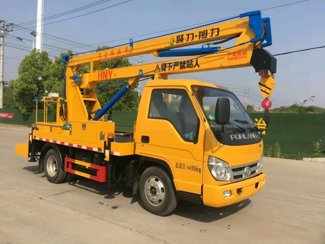 (藍(lán)牌)國(guó)六福田曲臂高空作業(yè)車:全柴115馬力,單排駕駛室,五檔變速箱,6.00R16鋼絲胎,帶方向助力動(dòng)力轉(zhuǎn)向,多功能方向盤(pán),軸距2800,帶排氣制動(dòng),ABS,作業(yè)高度13.5米,工作斗限載200kg,液壓360度全回轉(zhuǎn),三節(jié)折疊臂,單液壓舉升缸,雙向平衡閥,電控操作舉升臂,1噸可伸縮吊鉤可伸縮1米,四支液壓油缸可調(diào)試支腿,帶雙向液壓鎖。