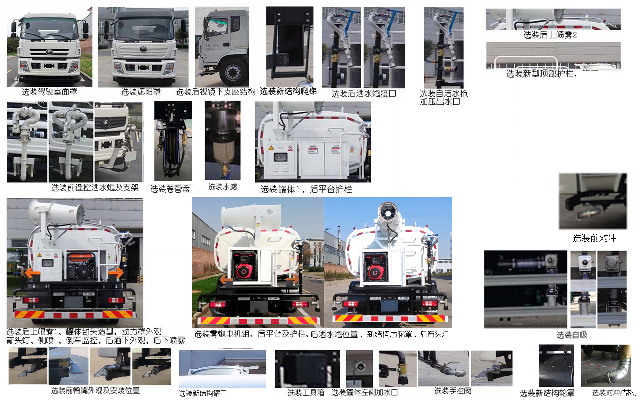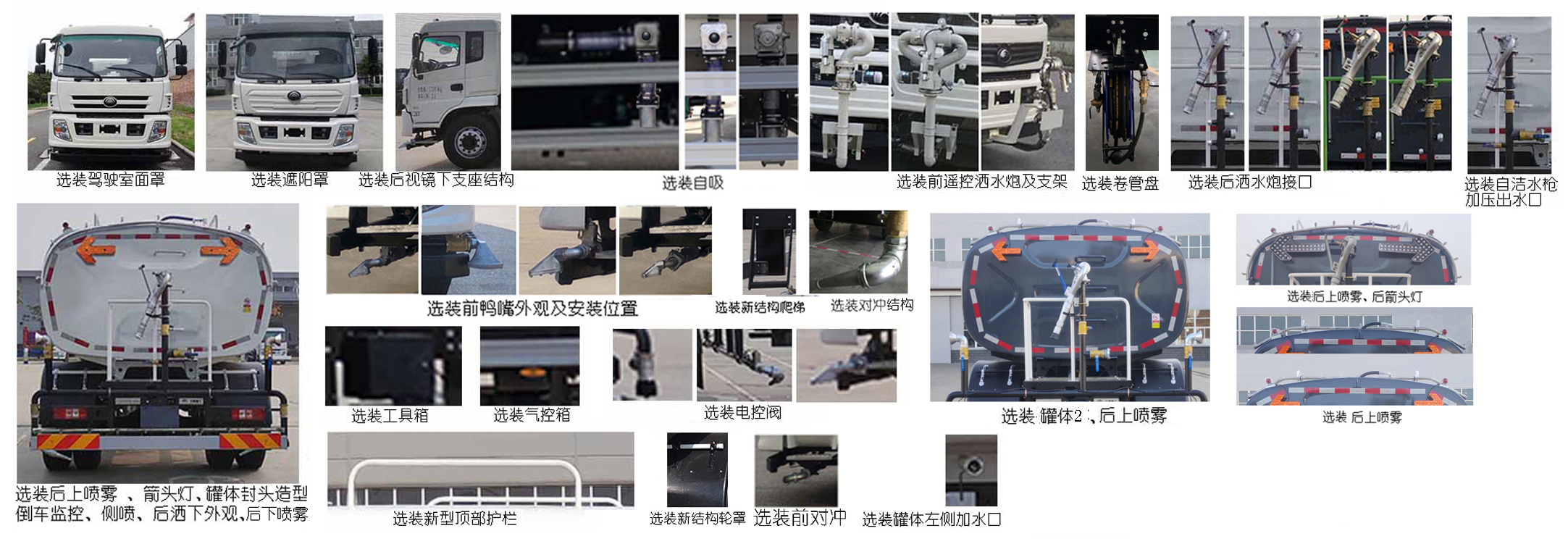ABS型號:ABS-E 4S/4M,CM4XL-4S/4M;ABS生產(chǎn)企業(yè):威伯科汽車控制系統(tǒng)(中國)有限公司,廣州瑞立科密汽車電子股份有限公司;安裝有限速裝置;限速裝置限速(km/h):89;發(fā)動機凈功率值:YCS04200-68凈功率為143kw,YCS06245-60A凈功率為176kw;選裝描述:該車可選裝自吸、前遙控灑水炮及支架、卷管盤、后灑水炮接口、自潔水槍、加壓出水口、后上噴霧、箭頭燈、罐體封頭造型、倒車監(jiān)控、側(cè)噴、后灑下外觀、后下噴霧、前鴨嘴外觀及安裝位置、新結(jié)構(gòu)爬梯、對沖結(jié)構(gòu)、工具箱、氣控箱、電控閥、新型頂部護欄、新結(jié)構(gòu)輪罩、前對沖、罐體左側(cè)加水口;可隨底盤選裝駕駛室面罩、遮陽罩、后視鏡下支座結(jié)構(gòu);該車型可取消前鴨嘴、后對沖、后灑、后灑水炮;側(cè)后防護情況:側(cè)防護裝置材料為Q355,與車輛采用螺栓連接,后防護裝置材料為QStE700TM,與車輛采用螺栓連接,截面尺寸為:120×80(mm),離地高度為:465mm;罐體有效容積(立方米)、罐體外形尺寸(mm):該車可選裝兩種罐體,兩種罐體有效容積均為11.2立方米;罐體1外形尺寸(長軸×短軸×長)為:2400×1400×4700(mm);罐體2外形尺寸(長軸×短軸×長)為:2400×1420×4600(mm);專用功能及裝置:該車裝有水泵、噴嘴專用裝置,用于噴灑路面、對路面進行除塵和降溫;前伸尺寸:570mm;其他說明:當選裝前遙控灑水炮時前伸為570mm,接近角為12,車長為8515mm;當選裝新型頂部護欄時車高為2910;準乘人數(shù)/罐體類型/額定載質(zhì)量(kg)對應關(guān)系為:2/7050/10820;3/7050/10755。 |