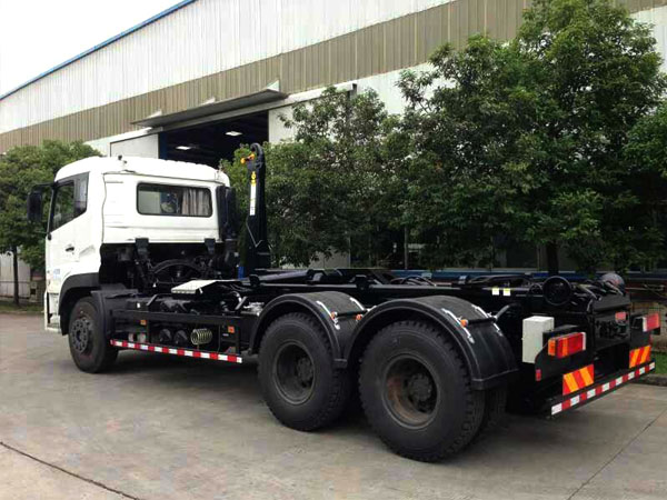 ★ 工作原理:掛桶垃圾車采用鏈條和液壓油缸聯(lián)動裝置,實現(xiàn)對垃圾斗提升和翻轉(zhuǎn),將多處垃圾斗內(nèi)的垃圾自動收入車廂,并到目的地一次性自卸出來.具有全密封,自裝自卸功能,液壓操作.