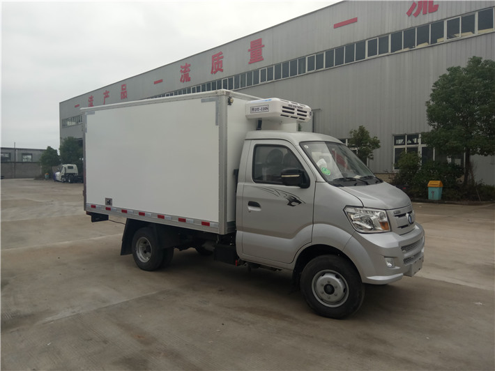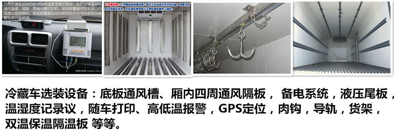 選裝不同品牌制冷機(jī)組;選裝黑色保險杠;選裝貨箱外觀;選裝新款前面罩、前部大燈及保險杠,選裝新款倒車鏡;頂部封閉,不可開啟;該車型的用途是貨品的冷藏運輸。