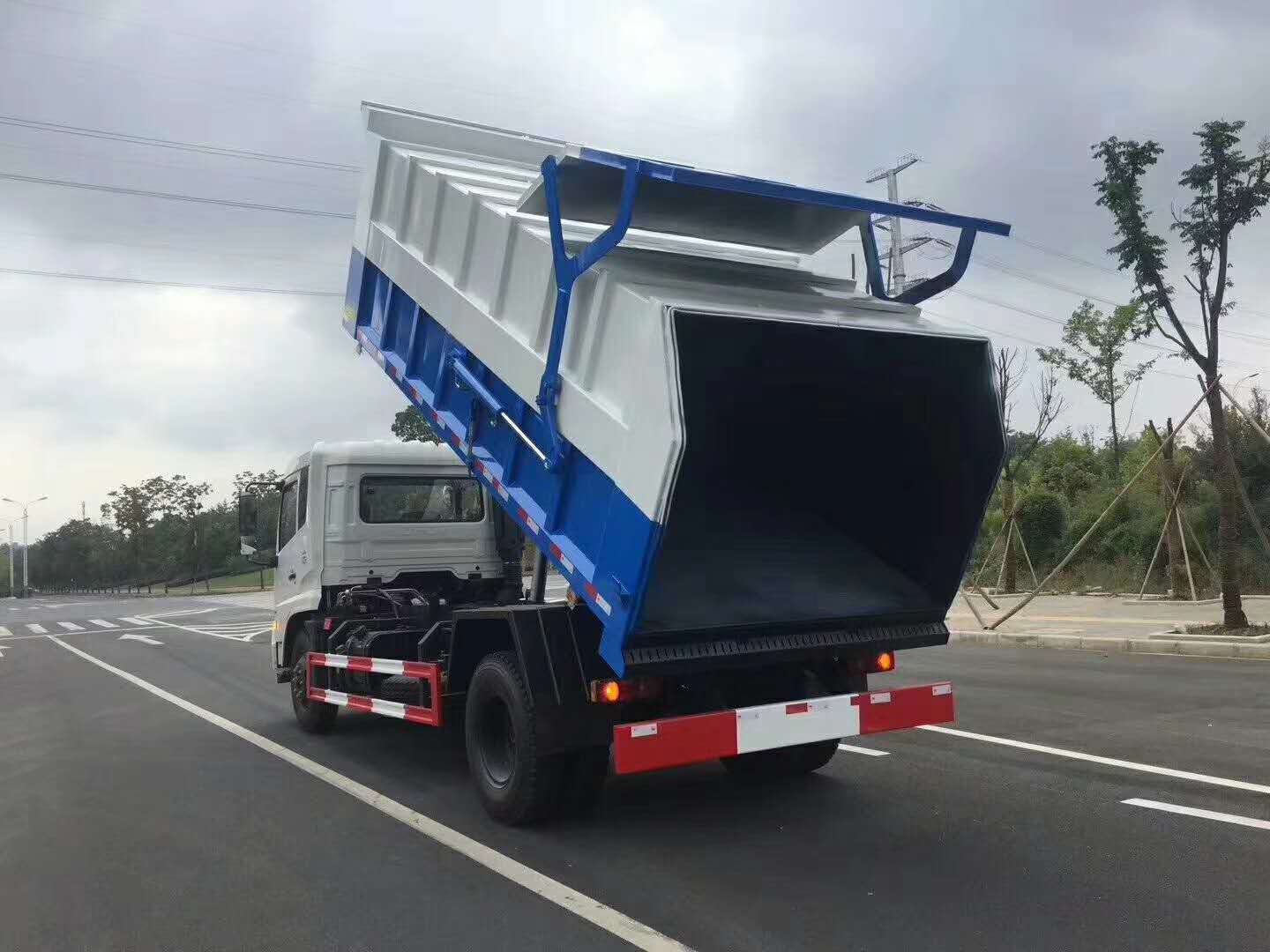 加蓋的目的是防止垃圾飄灑,帶蓋垃圾自卸車設(shè)計(jì)開蓋也有多異,